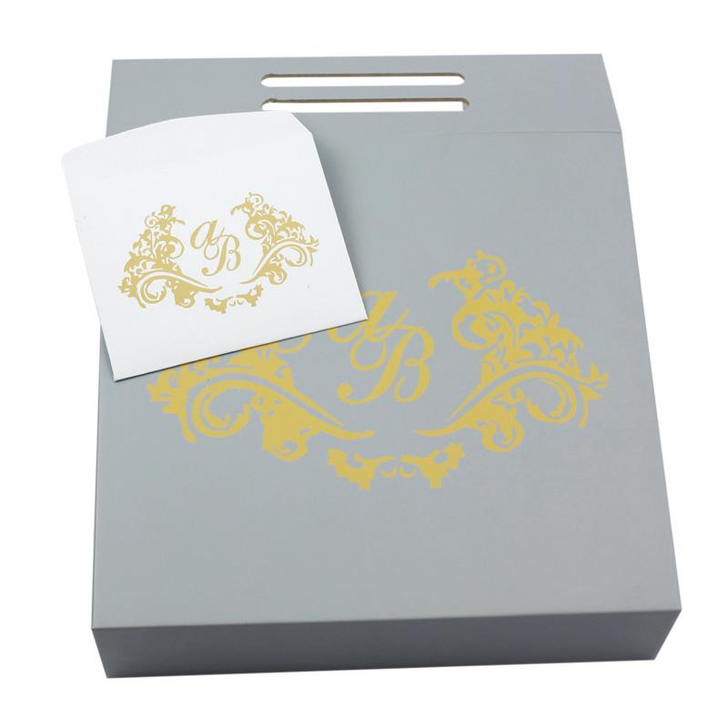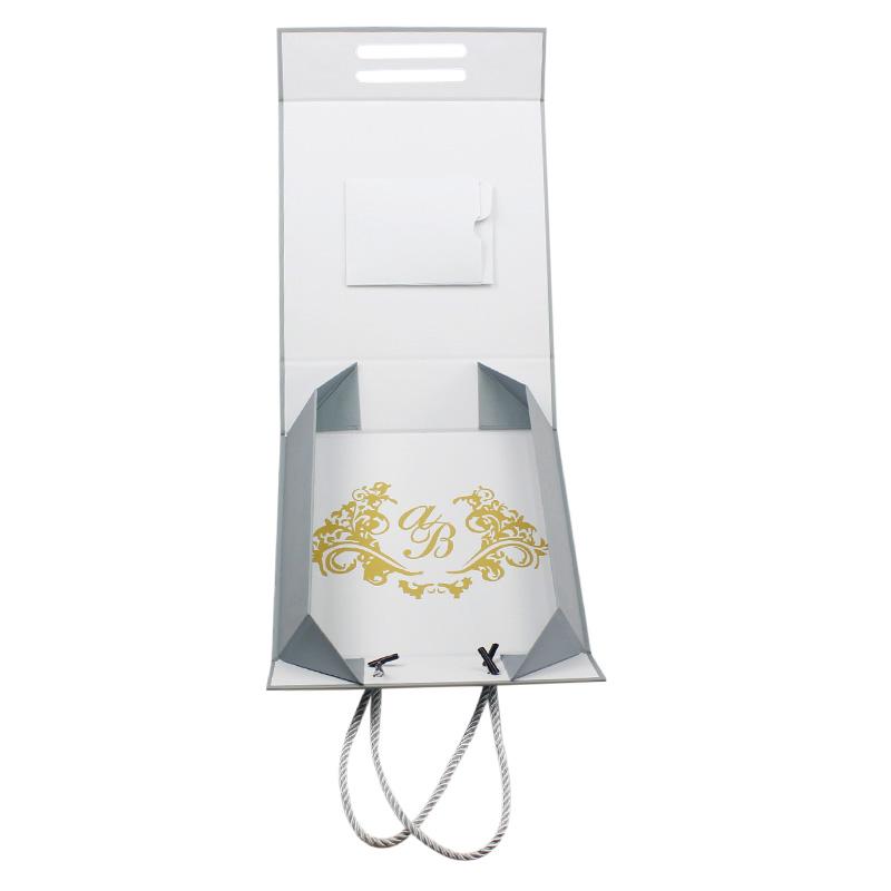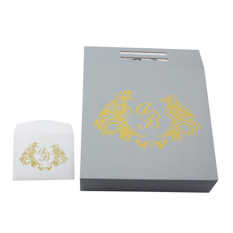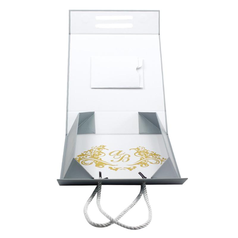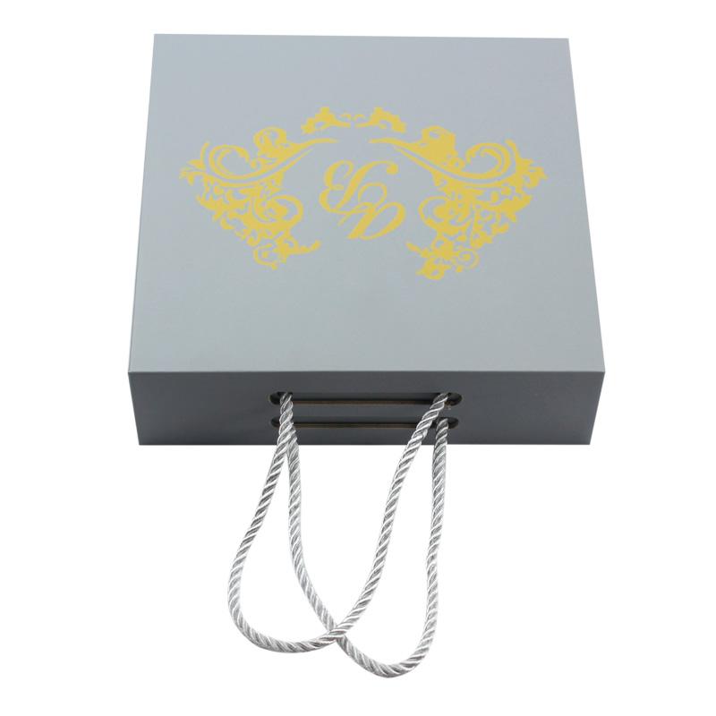Toto je ploché kartonové krabice s rukojetí, velmi personalizovaný design dárkové krabičky pro snadné přenášení