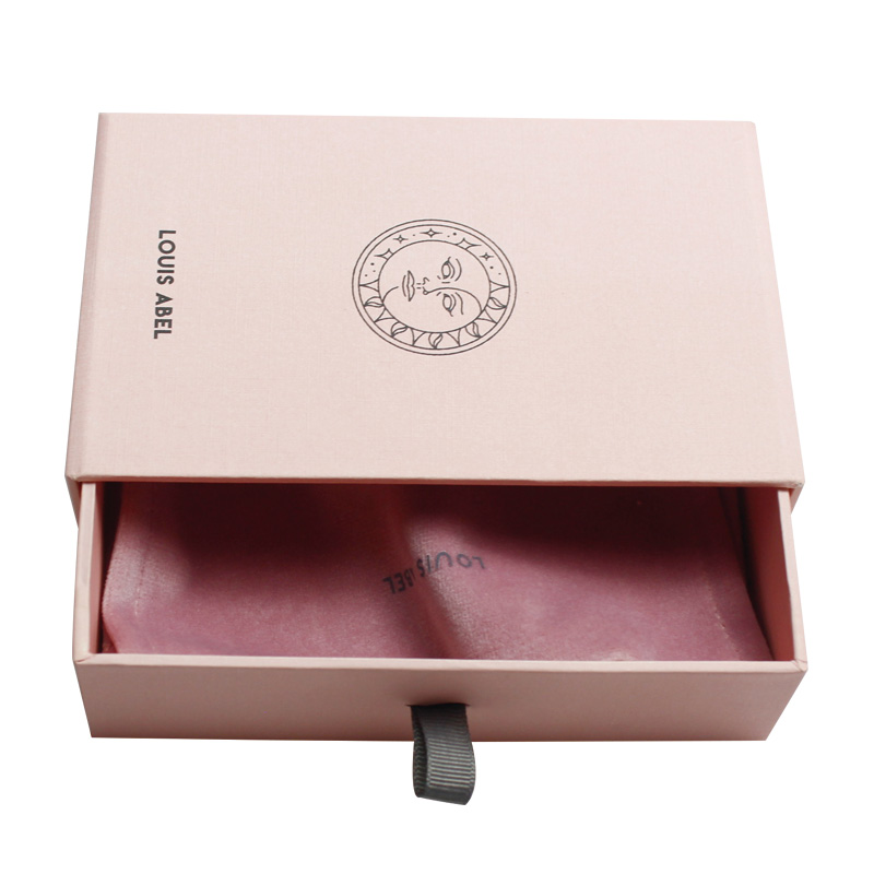 Je to růžová barva šperkovnice se zásuvkou který dělal ze speciálního papíru + šedého kartonu 1200g ,plný růžového potisku na přední a zadní straně s logem a textem, vnější potisk ladí se speciálním texturovaným vzorem na krabici.