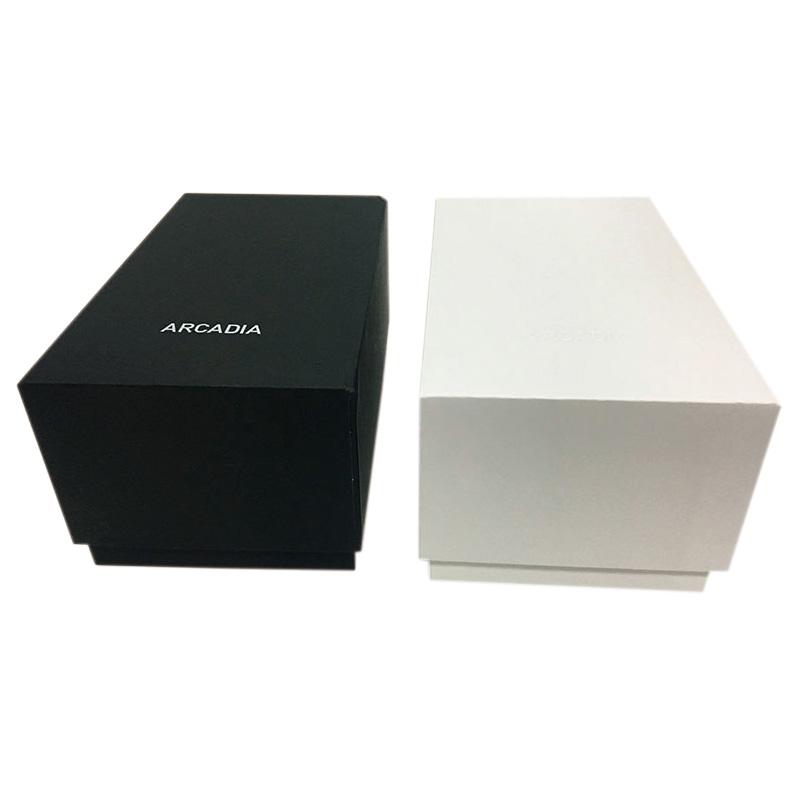 Tato krabice má 2 různé barvy, černou a bílou. Oba různé vzory mají stejnou velikost, 9,2*16,2*7,6 cm. S vložkou z EVA. Vyrobeno z 157 g/m² potahovaného uměleckého papíru, 2 mm silného oboustranného šedého kartonu a černého kartonu.