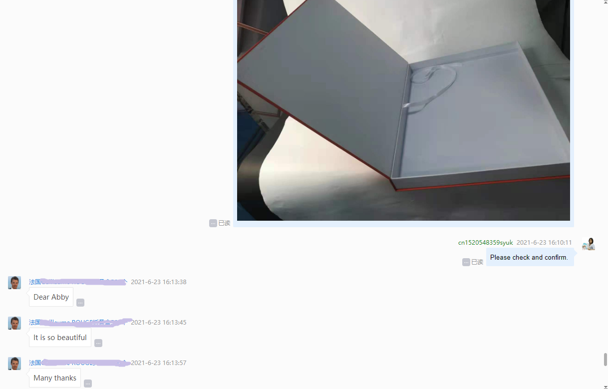 Nakonec s naším nápadem souhlasil. Poté, co jsme s ním potvrdili návrh potisku, byl vzorek krabice hotový do 3 dnů. Poslali jsme vám fotky a videa pro vaši informaci. Moc se mu to líbí.