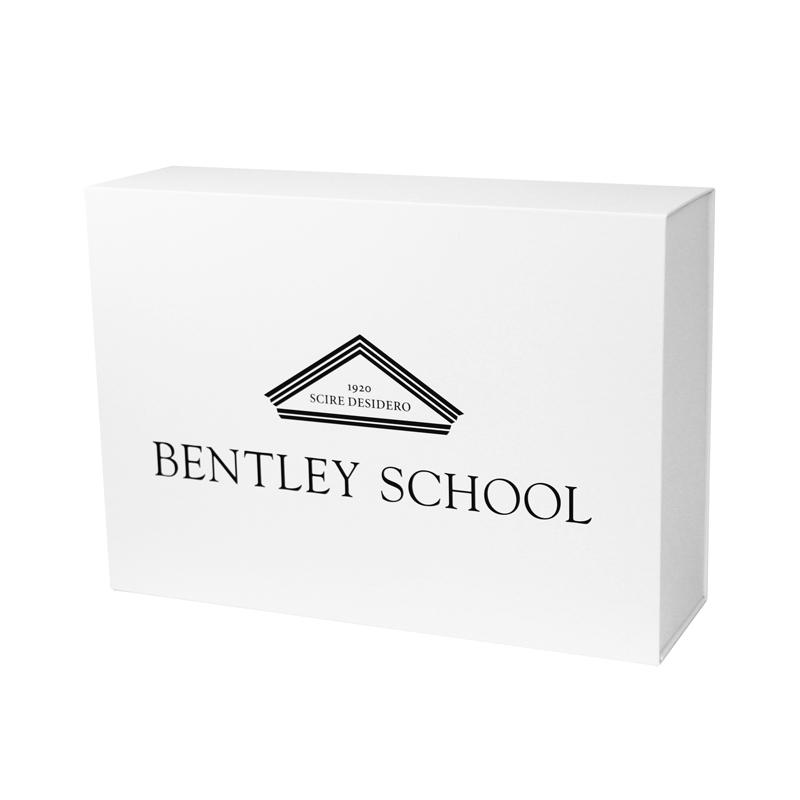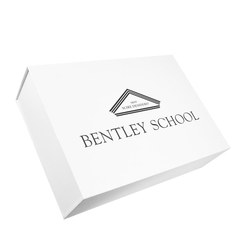 Matně bílá dárková krabička s černě vytištěným logem na míru, vhodná pro všechny druhy prémiových dárkových balení.