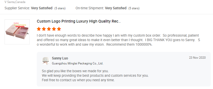 Poté mi Jonathan představil svou šéfku – Virginii. Příjemně jsme si popovídali a potvrdili jsme si všechny detaily krabice se zásuvkami a saténovými sáčky. Vzorek jsme dokončili do jednoho týdne a já jsem do Virginie poslal videa a obrázky, aby vzorek potvrdily.