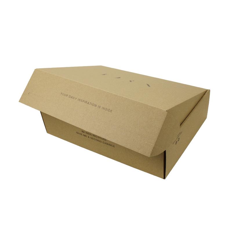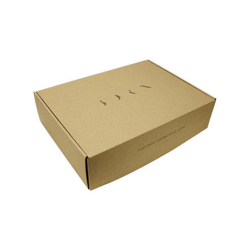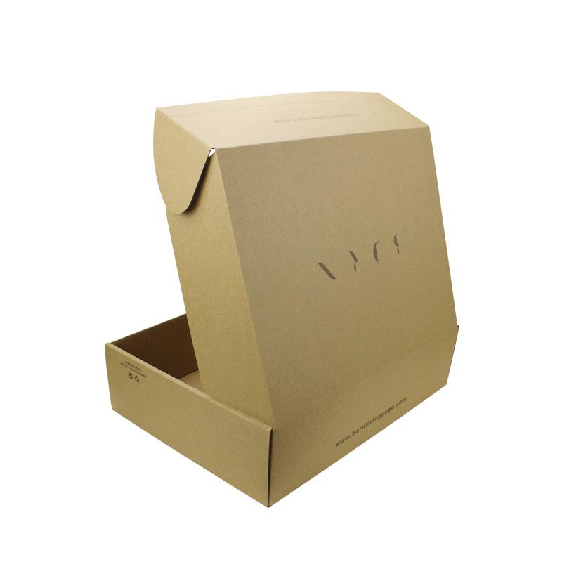 Toto je Přepravní krabice pro e-commerce Vyrobeno z pevného třívrstvého vlnitého papíru, potištěno logem společnosti a dalšími informacemi v černé barvě. Je to levnější varianta než potisk CMYK. Krabici lze upravit libovolnou barvou a různým zpracováním. Pro více barevných možností se prosím podívejte do našeho seznamu produktů - vlnitá poštovní krabice .