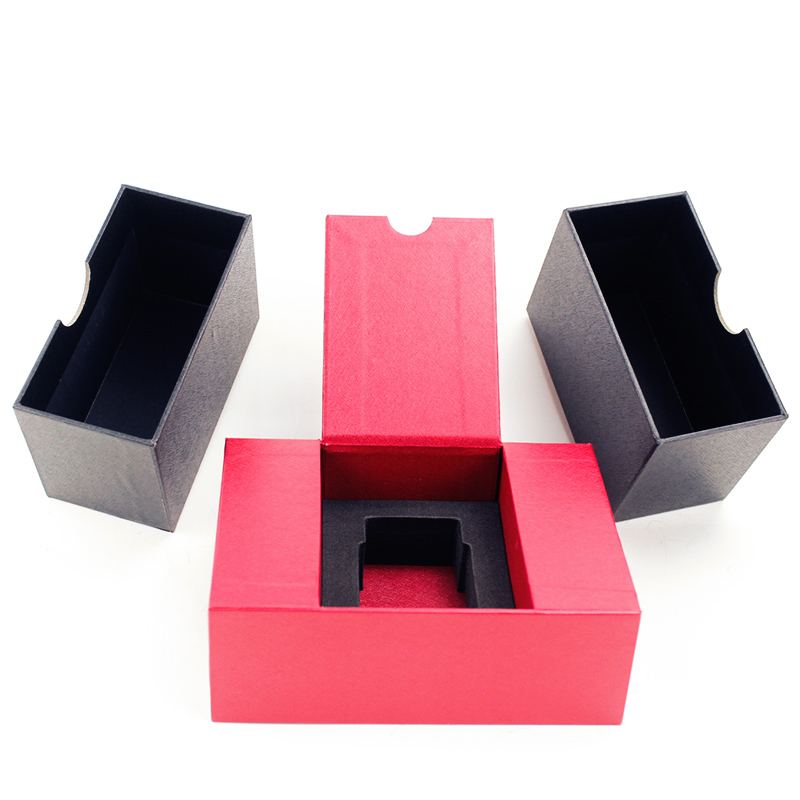 Unikátní krabice se speciální texturou na zakázku, klasická červená a černá barva pro zvýraznění luxusu.