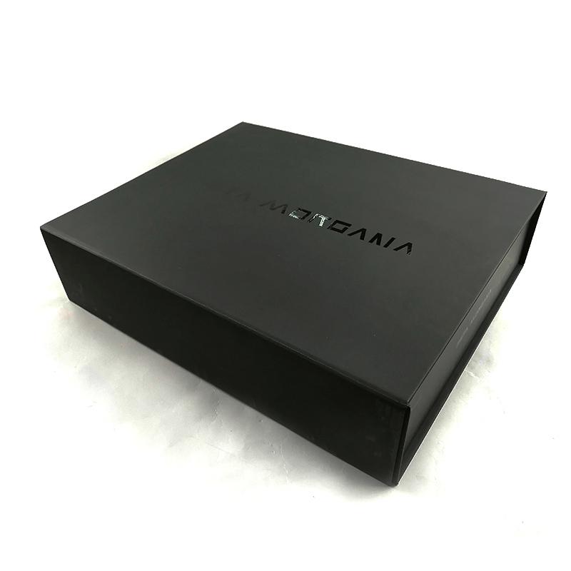Toto je elegantní černé ploché krabice který dělal 157g umělecký papír C2S + 1200g šedá lepenka, vnější plnobarevný černý tisk s UV nátěrem loga, uvnitř plno potisku vzoru.