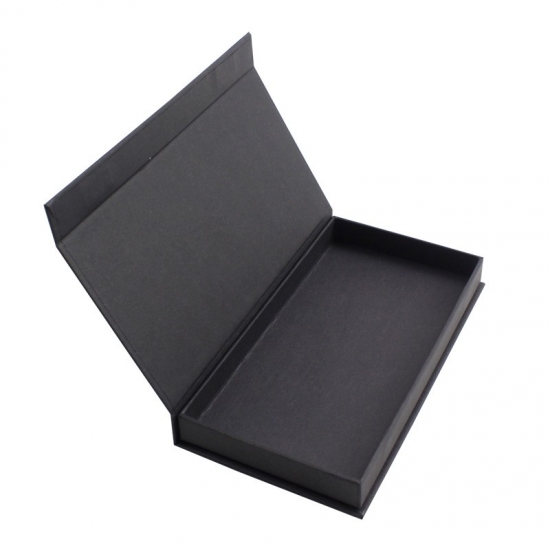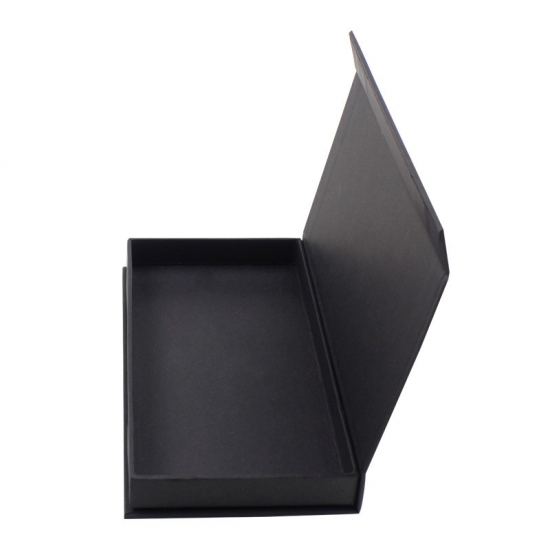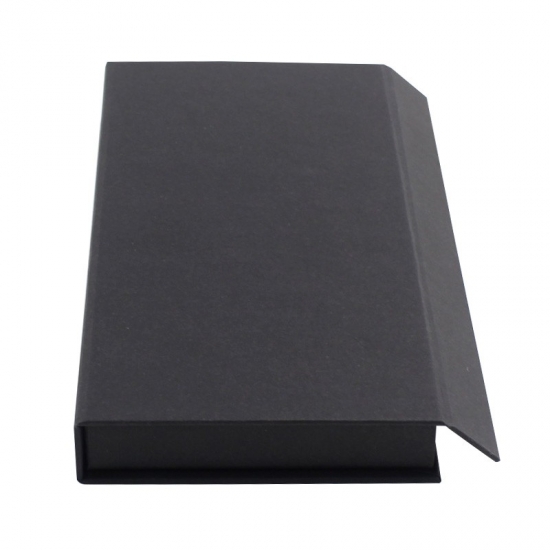 Černá malá magnetická odklápěcí krabička ve tvaru knihy, vhodná pro vlastní loga, tištěné vzory atd. Používá se pro vnitřní balení, ekonomická a ekologická, opakovaně použitelná