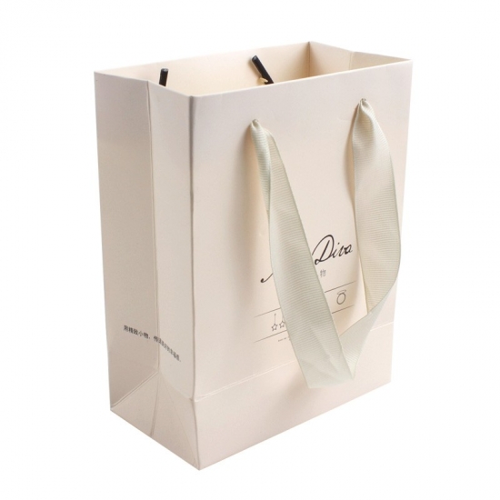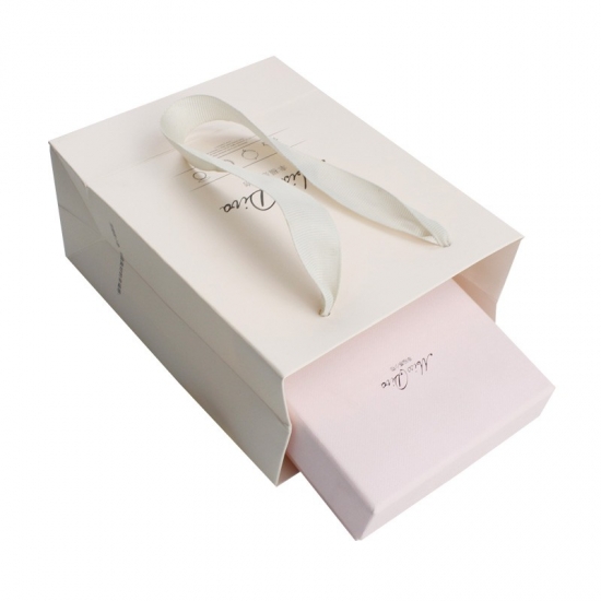 Tyto malé dárkové tašky jsou potištěné barvami CMYK na uměleckém papíře C1S o gramáži 250 g/m² s matným povrchem a stužkou s plastovým koncem. Oblíbený styl balení pro reklamní dárky, jako jsou šperky, kosmetika, dětské boty atd.