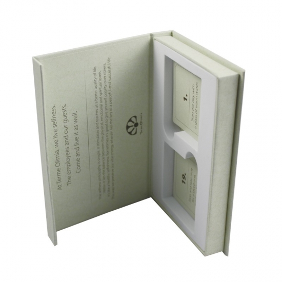 2) Materiál: 157gsm C2S Artpaper laminace 1200gsm šedý karton, Eva pěna, papírová karta