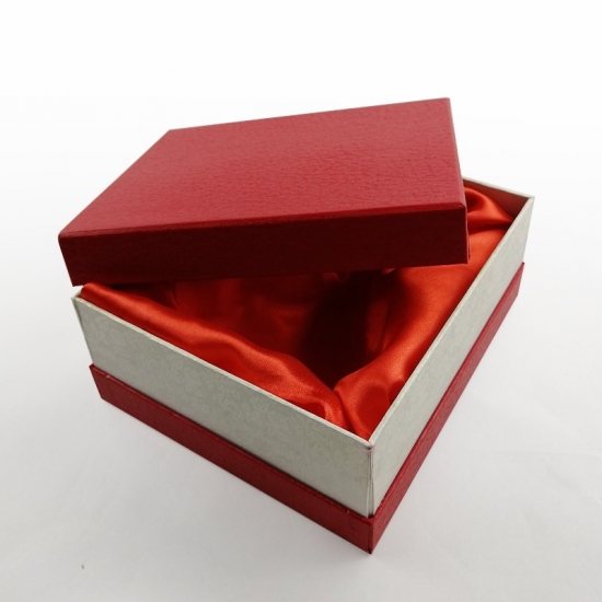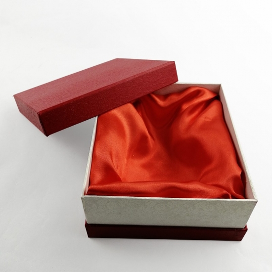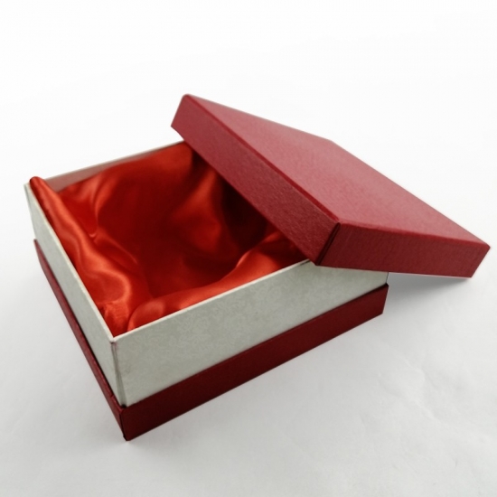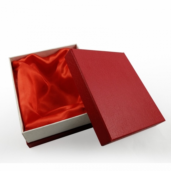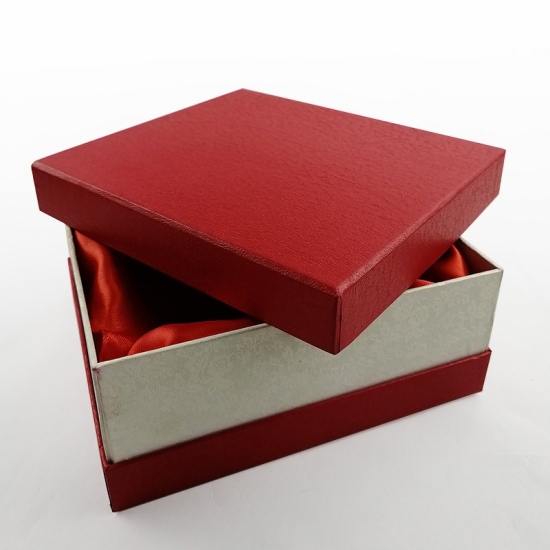 Jedná se o velké dekorativní čtvercové červené dárkové krabičky se zlatým vzorem a víčky na zakázku, vyrobené ze speciálního texturovaného papíru, uvnitř s podšívkou ze saténové látky a pěnovou výplní. Velikost: 12x12x6 palců.