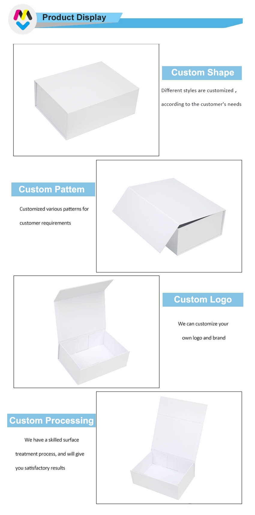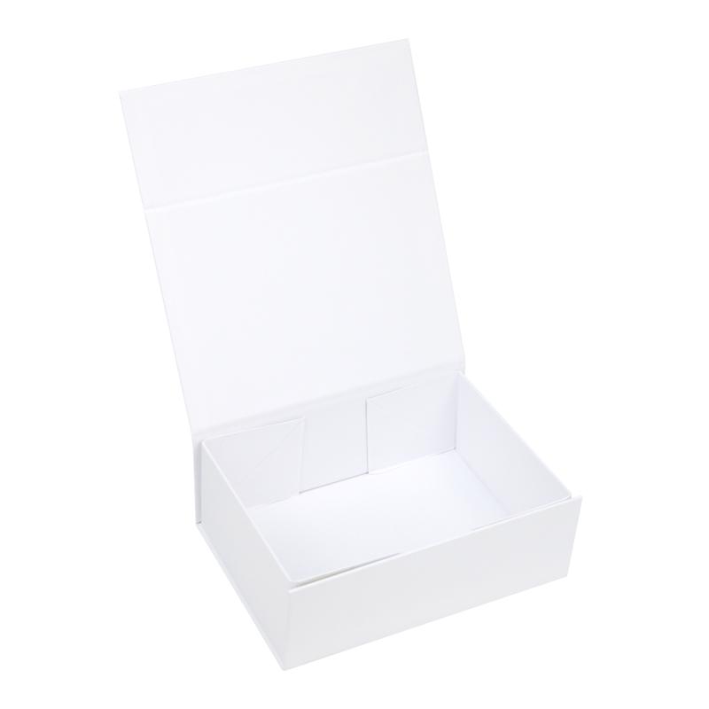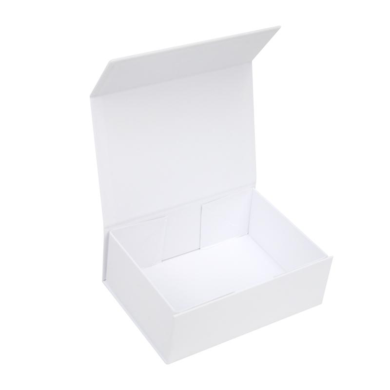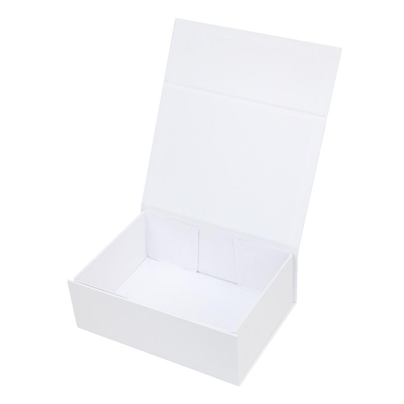 Bílá magnetická krabička je skládací papírová krabice s magnetickým víkem. Bílá barva je oblíbenou barvou pro dárkové krabičky.
