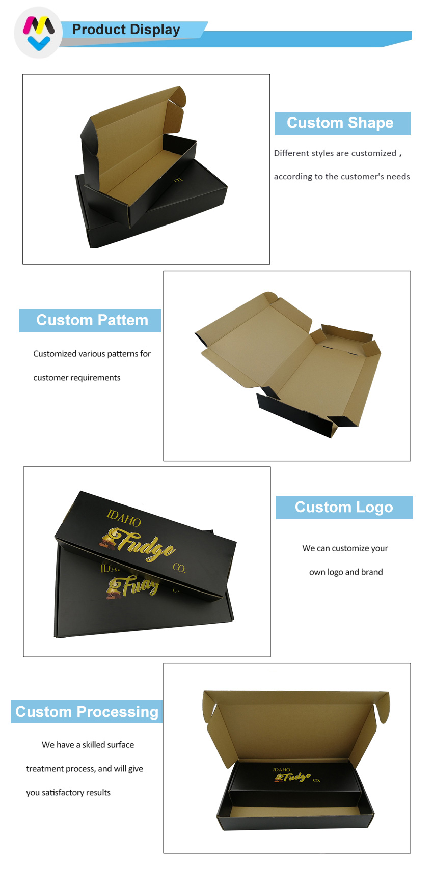Vlastní logo levná cena, ale kvalitní černé personalizované hnědé vnitřní ploché balení přepravních krabic.