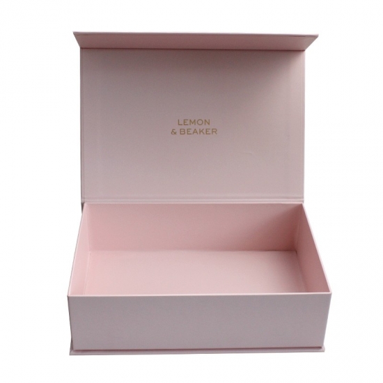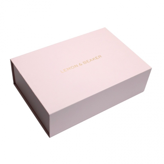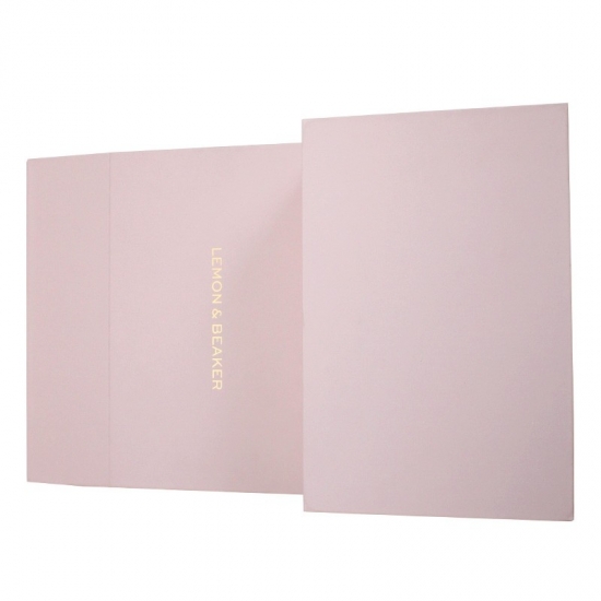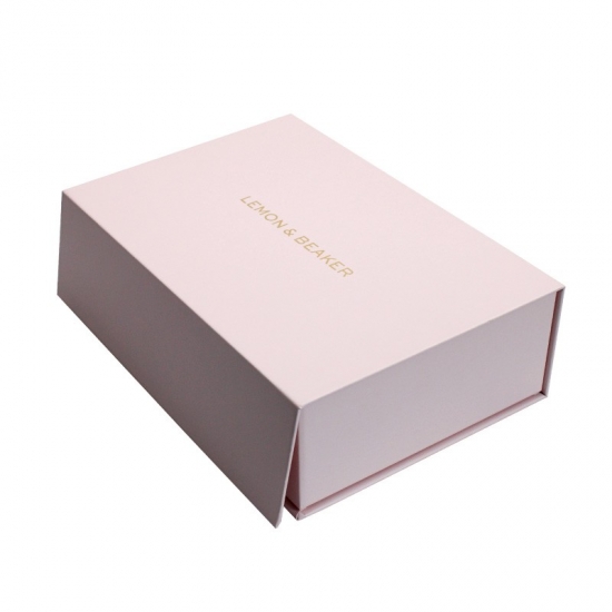 Růžová magnetická dárková krabička byla vyrobena z uměleckého papíru C2S o gramáži 157 g/m², laminovaného 2 mm šedou lepenkou, matná laminace, růžová ražba za tepla.