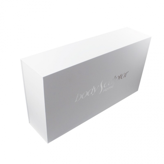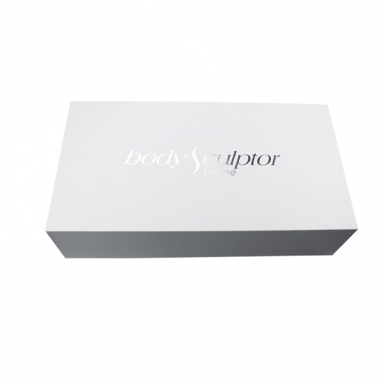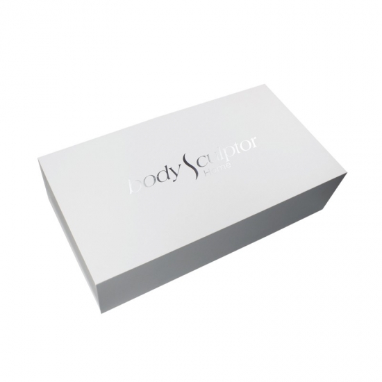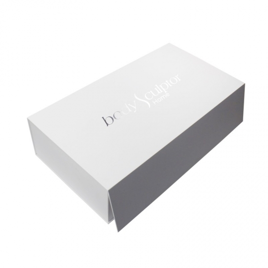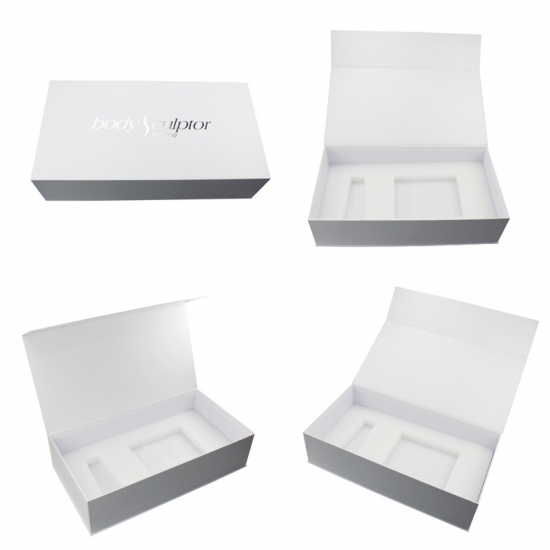 Bílá personalizovaná magnetická dárková krabička byla vyrobena z 157gsm uměleckého papíru C2S laminovaného 2mm šedým kartonem s perleťovou bavlněnou podložkou, přizpůsobená libovolné velikosti, jakékoli barvy a loga, povrchová úprava matná laminace, horká ražba, velikost 53,5*33*14cm