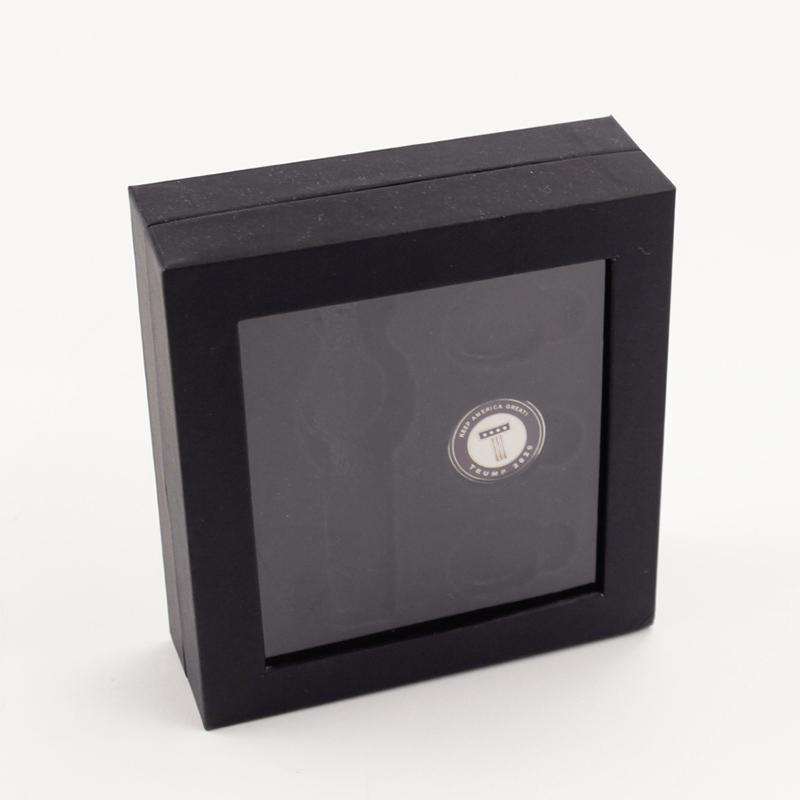 Tato krabice má průhledné okénko. Produkty a vložené materiály jsou jasně a přímo viditelné. Je vyrobena z uměleckého papíru o gramáži 157 g/m² a šedé lepenky o tloušťce 2 mm. Všechny použité materiály jsou recyklovatelné.