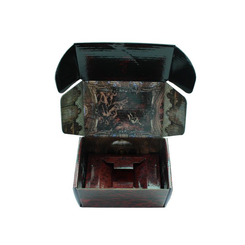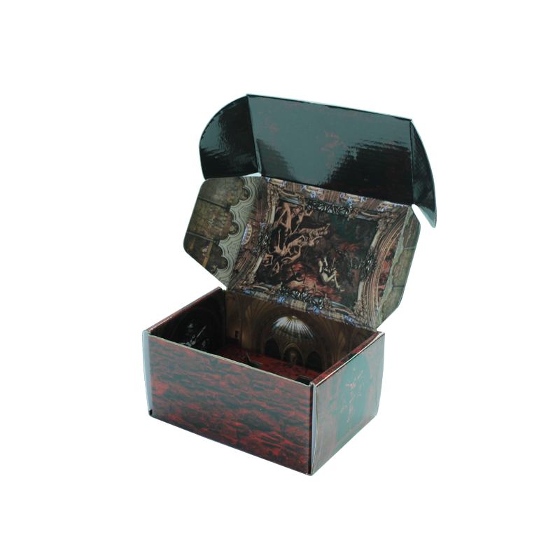 Toto je poštovní schránky s potiskem na zakázku , vyrobeno z 300g CCNB, zabalené v silné vlnité lepence, uvnitř 300g/m² CCNB s výřezovou kartonovou vložkou. Je oblíbené pro balení produktů elektronického obchodování a doprava. Vnější i vnitřní strana potištěna plnobarevným CMYK. Lesklá povrchová úprava odlišuje tyto krabice od ostatních obalových materiálů.