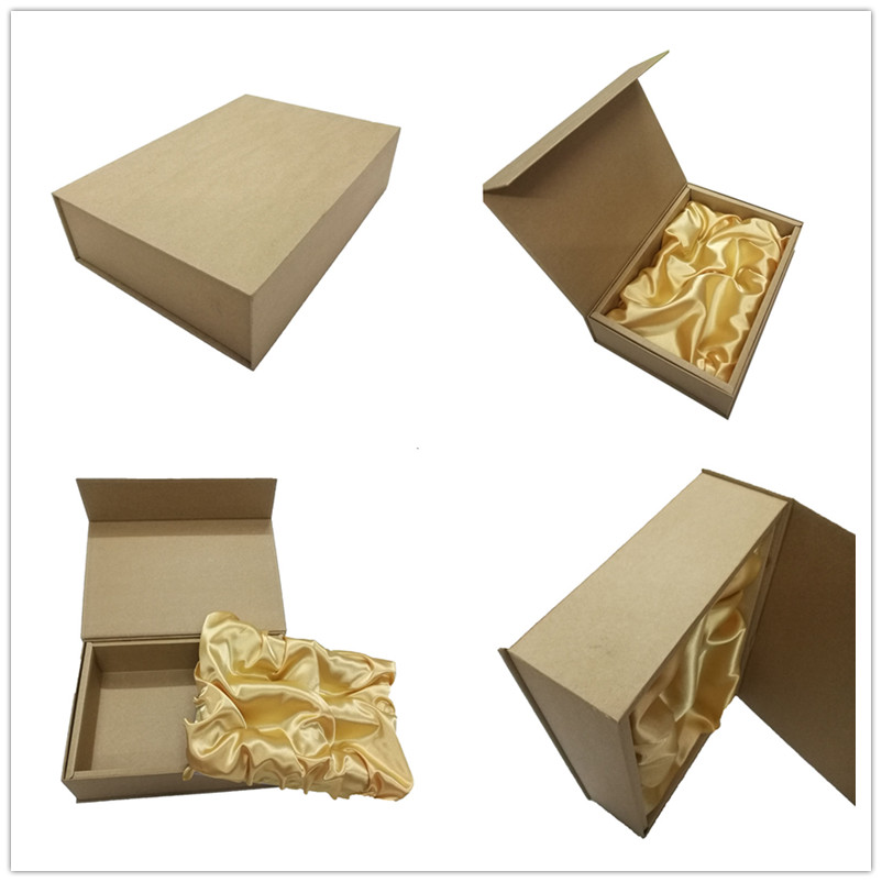 Zakázková pevná hnědá kraftová papírová krabice se saténovou vložkou