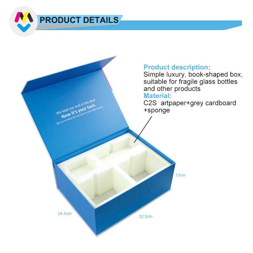 Toto je bílá magnetické dárkové krabičky ve tvaru knihy Vyrobeno z 157g uměleckého papíru C2S + 1200g šedé lepenky, vložka z kvalitní a tvrdé bílé houbičky, která udrží produkty uvnitř krabice na místě.