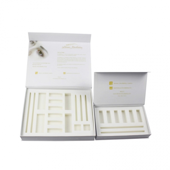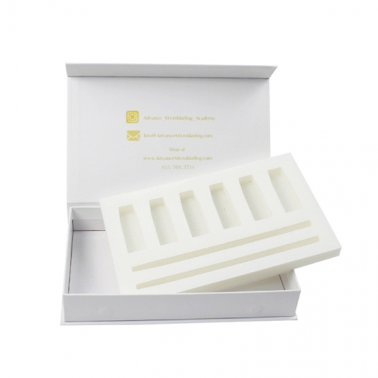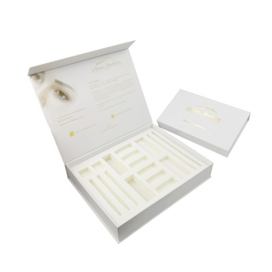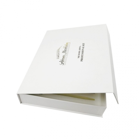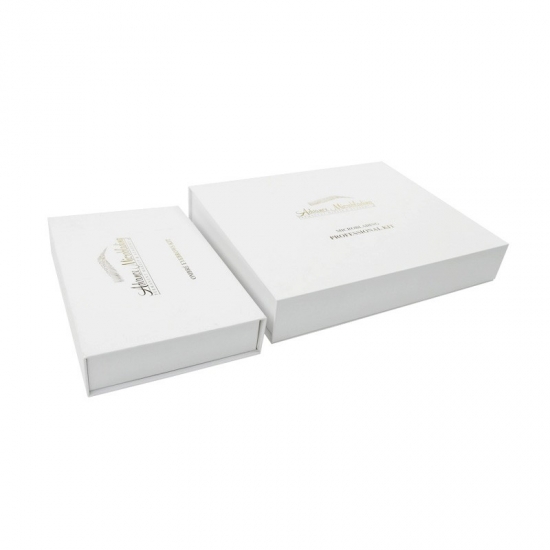 Magnetická flip krabička s možností ražby za tepla byla vyrobena z 157gsm uměleckého papíru C2S laminovaného 2mm šedým kartonem, vnitřní strana je z houbovité pěny, libovolná velikost, libovolná barva a logo, povrchová úprava matná laminace, zlatá ražba za tepla, velikost 24*15,5*4 cm.
