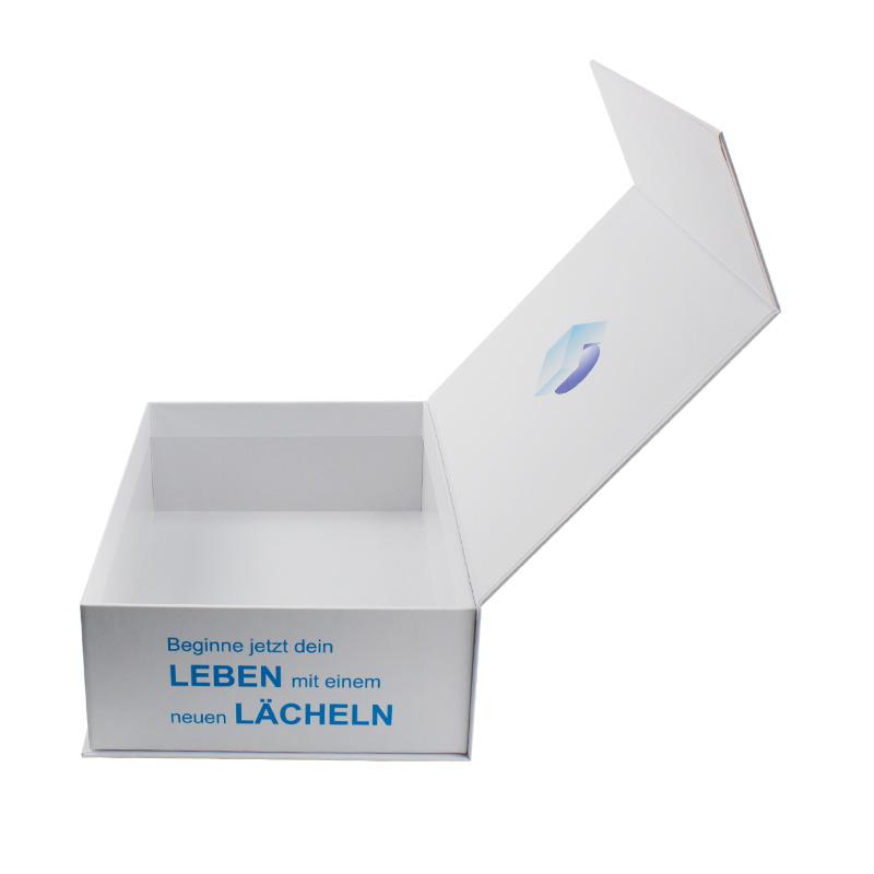 Dárková krabička z magnetického papíru na zakázku v bílé barvě s odklápěcím víkem