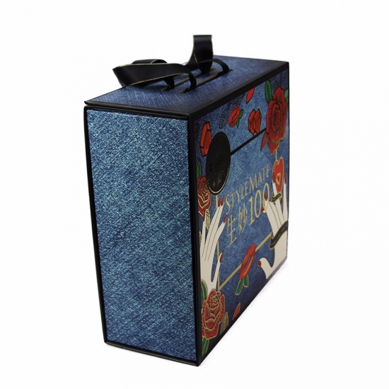 Normally 15-20 days after design/sampleSkládací krabička s džínovým vzorem a stuhou s grogrénovým úchytem a lanem