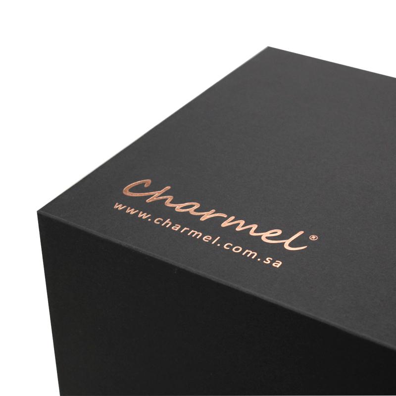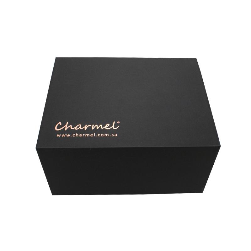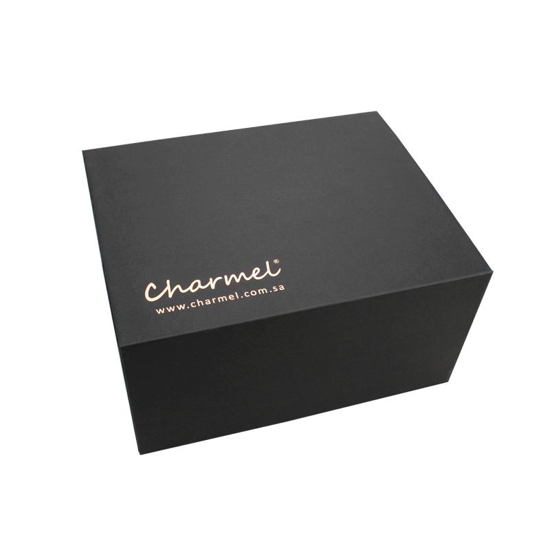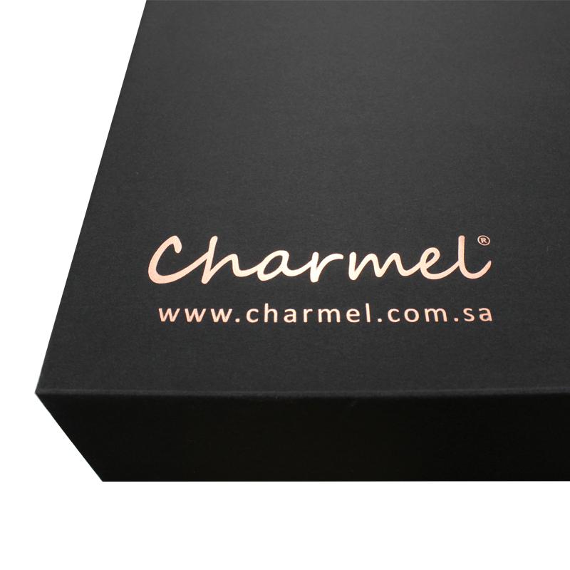 Tohle je černá snadné skládání b voly který dělal Speciálním černým papírem + 1200g šedou deskou je logo na rohu horního víka vyraženo růžovo-zlatou fólií. Můžeme přizpůsobit velikost a logo dle vašeho požadavku.