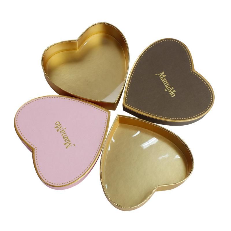 Toto je čokoládová krabička ve tvaru srdce který dělal oboustranným potahovaným uměleckým papírem + speciálním papírem, vnější strana víka s plným potiskem s matným povlakem, uvnitř základny použijte lesklý speciální papír.