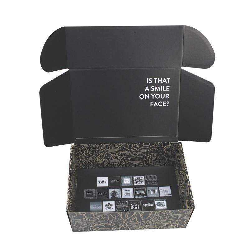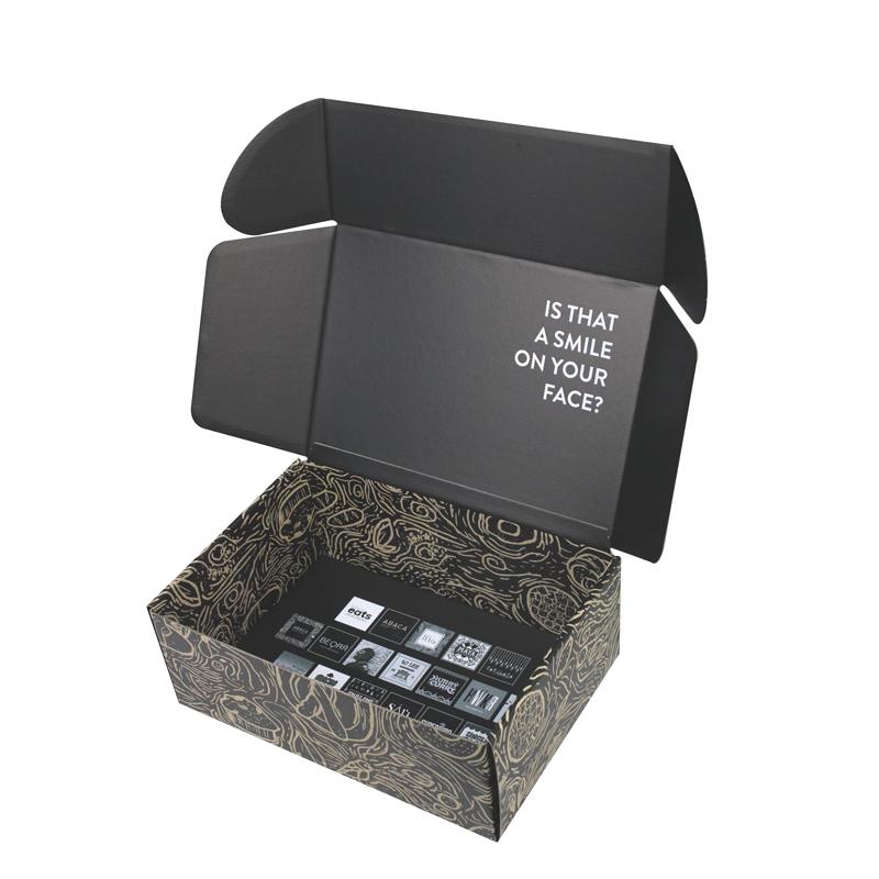 Matné černé vlnité přepravní krabice s potiskem z továrny