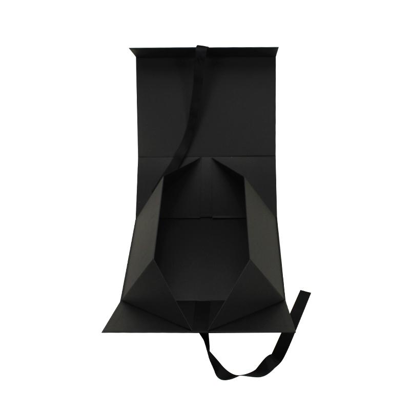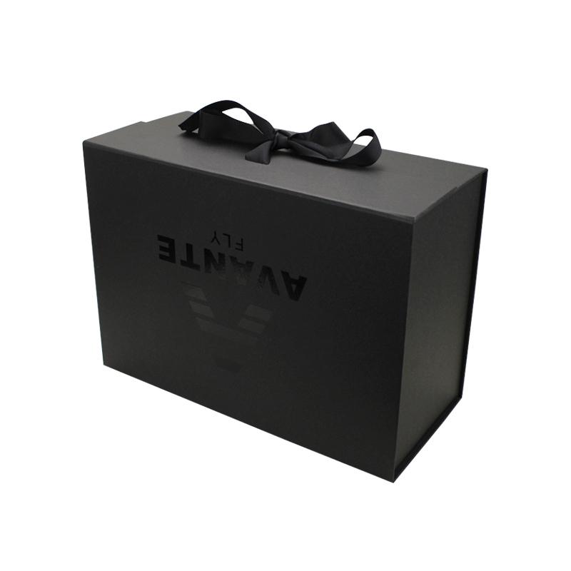 Fantazie Skládací krabice na boty Vyrobeno z černého papíru o gramáži 120 g/m² laminovaného 2mm pevnou lepenkou. Celá černá krabice s černou stuhou. Vlastní logo s UV lakováním. Někteří lidé také preferují zlatou fólii pro horkou ražbu a reliéfní tisk na černé skládací krabice. K dispozici je jakákoli povrchová úprava pro zakázkovou službu.