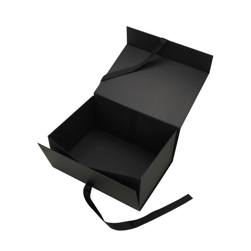 Luxusní černé skládací kartonové krabice na boty se stuhou