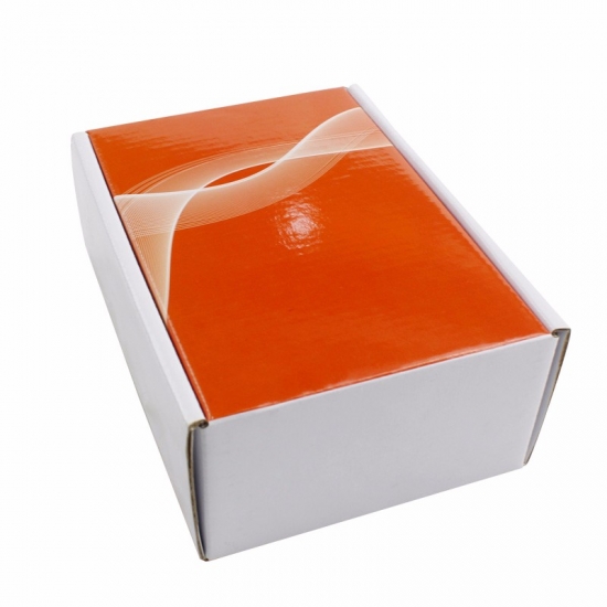 Toto je lesklé vlnité dárkové krabice které jsou vyrobeny z 300g CCNB+WE flétny, jsou to vlnité dárkové krabice pro zakázkový velkoobchod: vnější strana je plnobarevný tisk s lesklou povrchovou úpravou a vnitřní strana je bílá bez potisku.