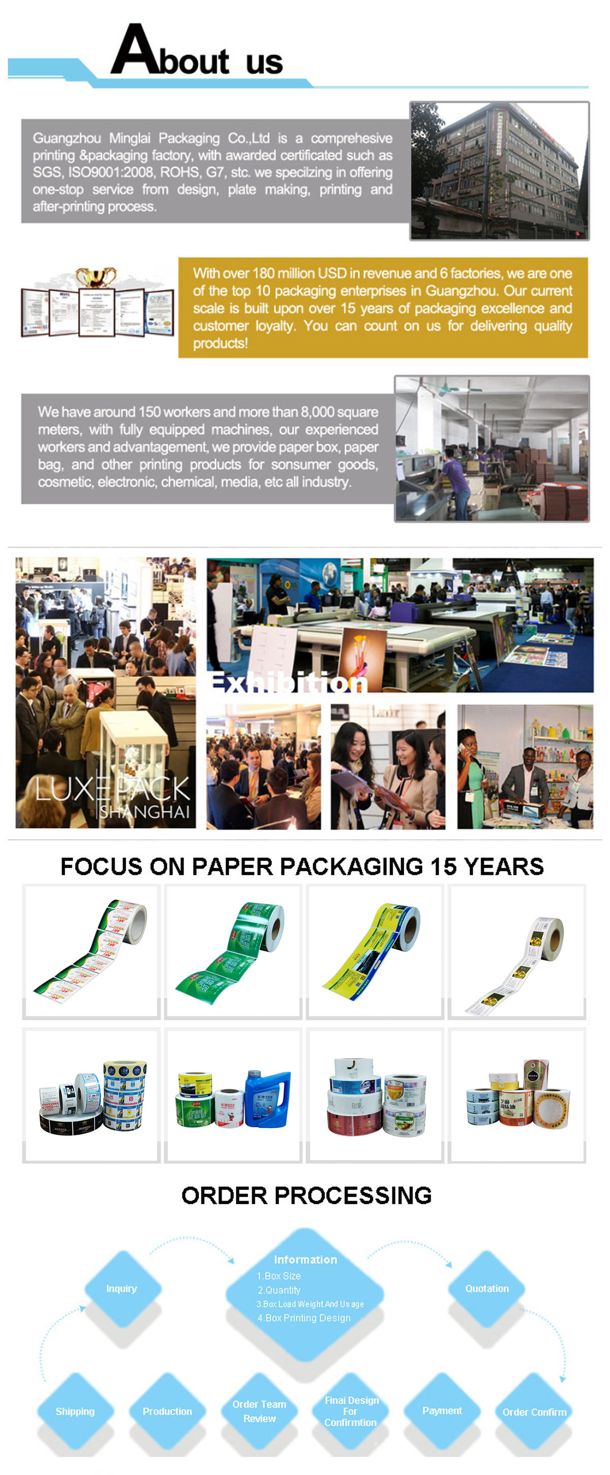 Společnost Adhesive Label dokáže splnit vaše individuální potřeby v oblasti balení konstrukcí různých druhů obalů. Máme automatizovanou balicí linku pro tisk samolepicích etiket na míru.