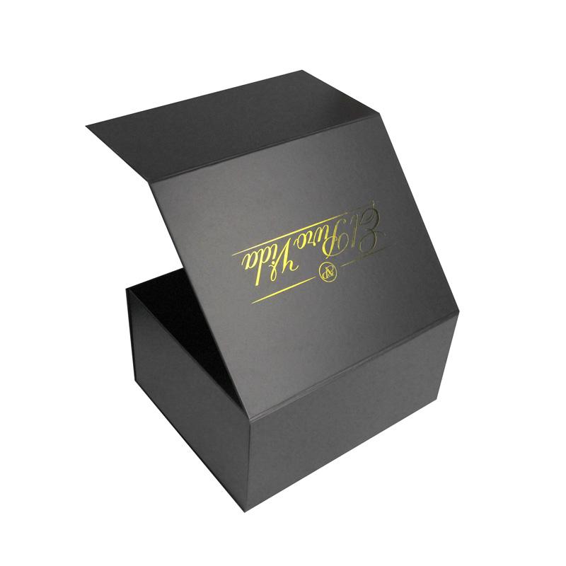 Jedná se o modré velké ploché skládací krabičky s magnetickým uzávěrem který dělal z 157g uměleckého papíru C2S + 3mm šedé lepenky, uvnitř modrý hladký povrch bez loga s matnou povrchovou úpravou.