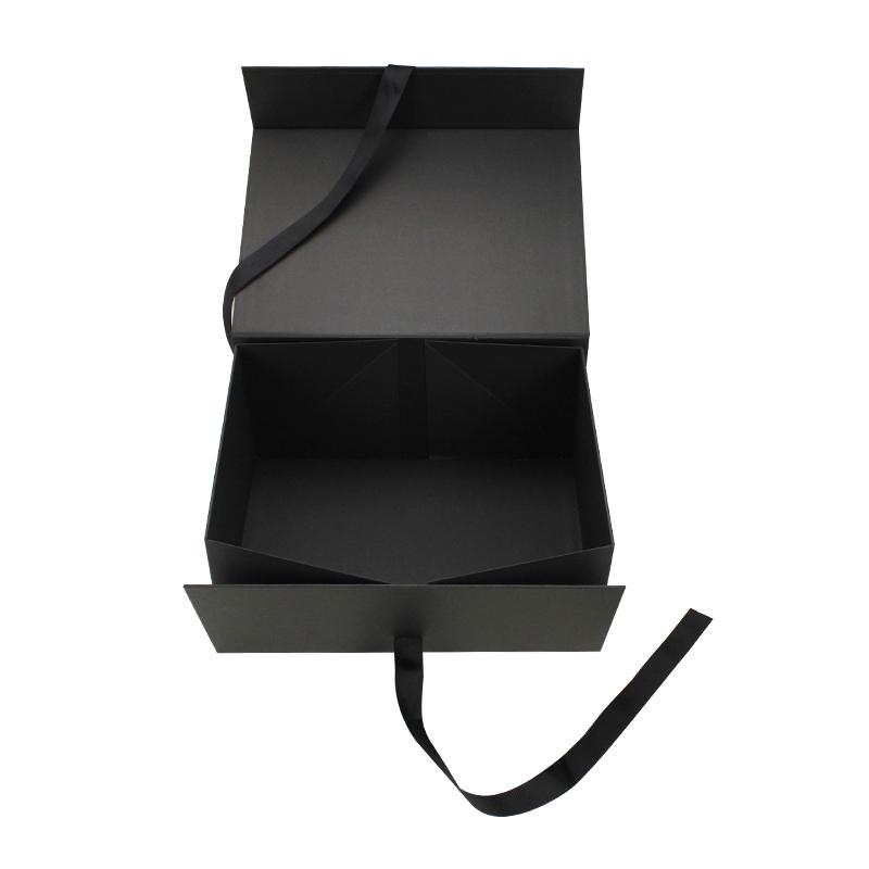 Guangzhou profesionální velkoobchodní zakázkové personalizované černé skládací dárková krabička se stuhou 。