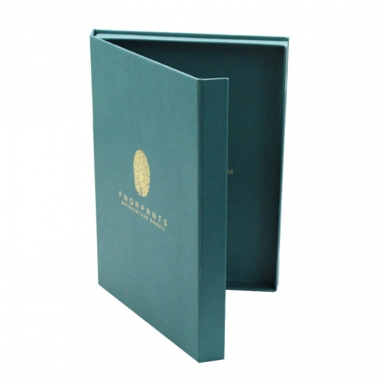 Toto je dodavatel magnetických dárkových krabiček který dělal z 157g uměleckého papíru C2S + 1200g šedé lepenky, logo otisku prstu na horní straně víka je vyraženo zlatou fólií.