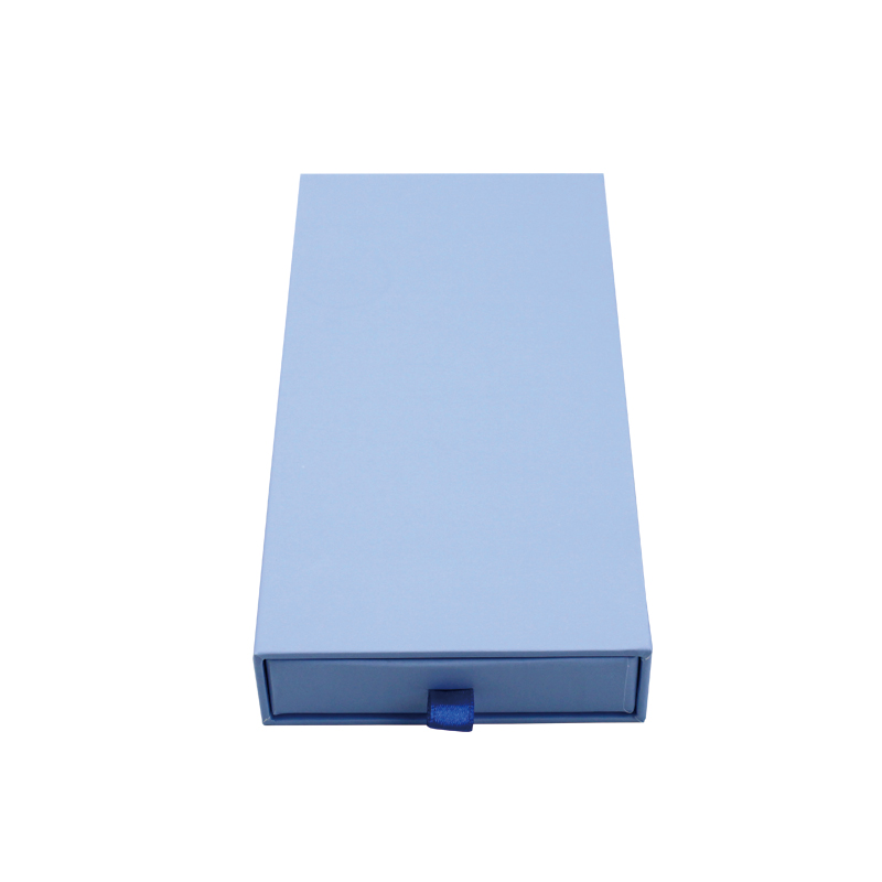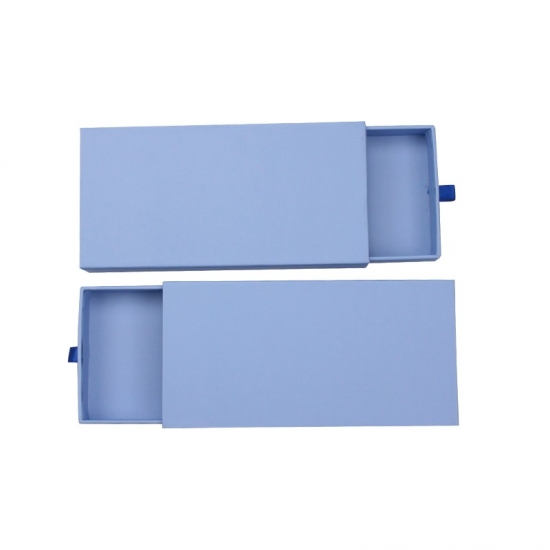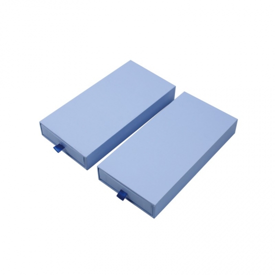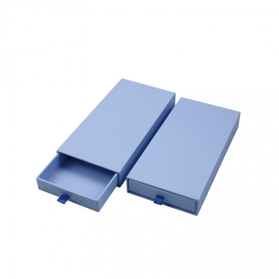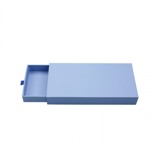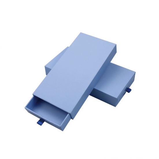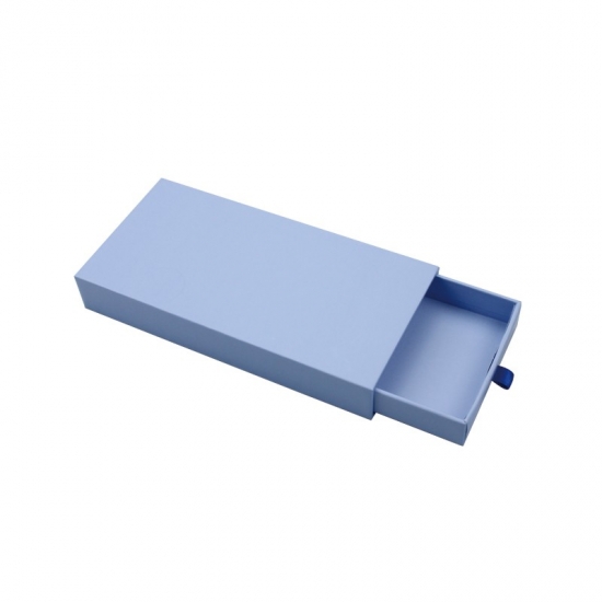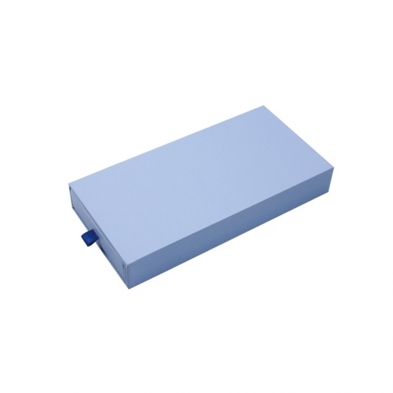 Je to matně modrá barva jednoduchá modrá zásuvková krabice který dělal z uměleckého papíru C2S 157 g + šedého kartonu 1200 g ,plný modrého potisku na vnější i vnitřní straně bez loga, matná povrchová úprava.