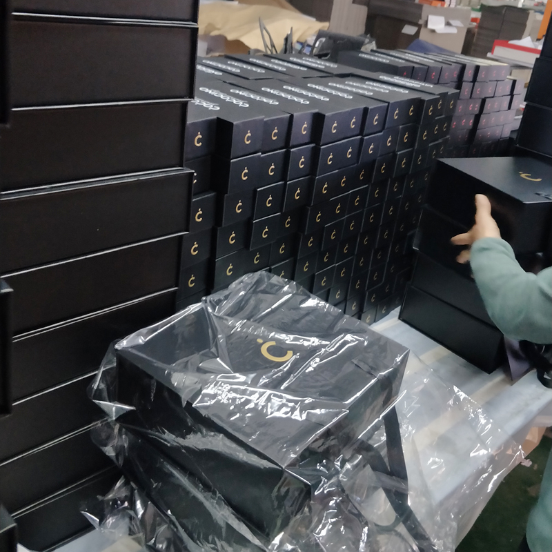 Dle jejích požadavků použijeme ražbu a reliéf loga zlatou fólií, aby logo zářilo a udělalo dojem na zákazníky. Po dokončení návrhu šablony magnetické dárkové krabičky začneme měnit abstraktní design v konkrétní produkt. Když uviděla naše vzorky, byla spokojena, že jsme splnili její požadavky na balení, objednávku rychle potvrdila a zahájila výrobu.