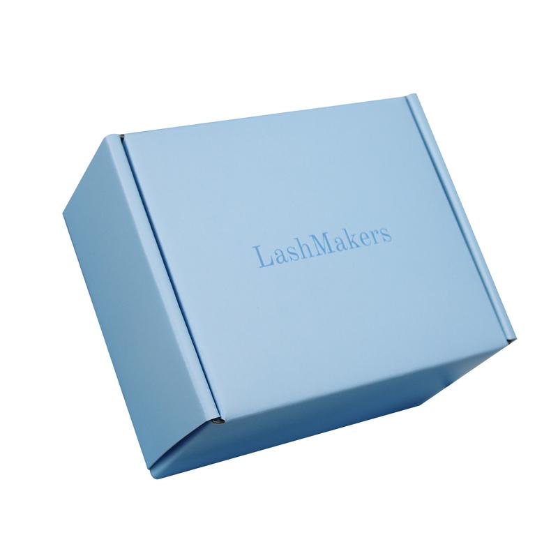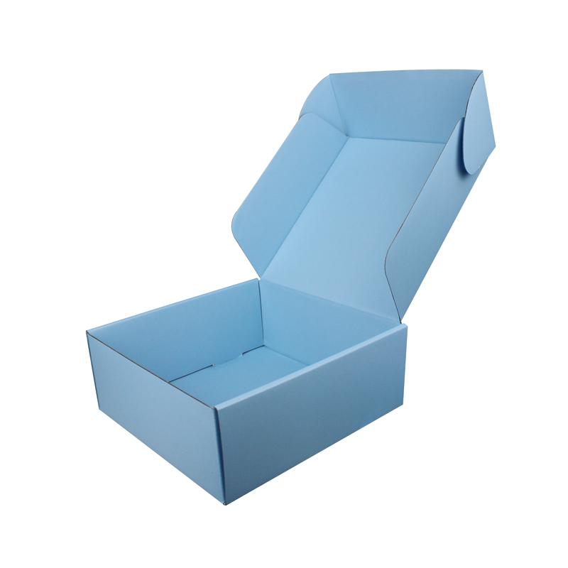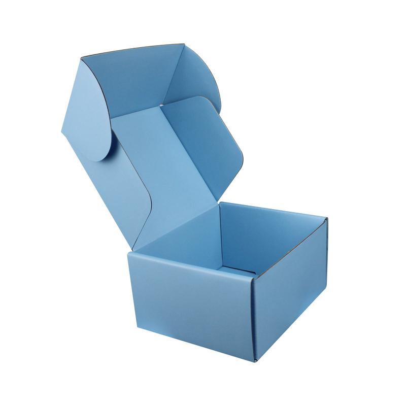 Personalizované vlnité ploché přepravní krabice s modrým logem a vyraženým logem