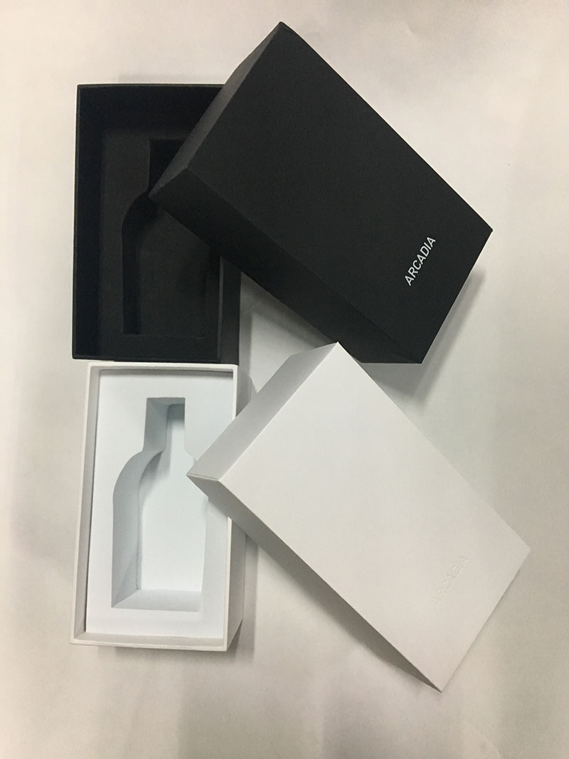 Vyrobeno z černého speciálního papíru/157g C2S uměleckého papíru + 1200g šedé lepenky, vložka z kvalitní a tvrdé černobílé EVA pěny, která udrží výrobky na místě.