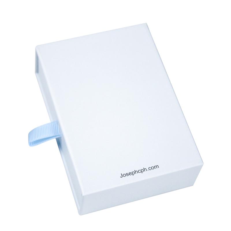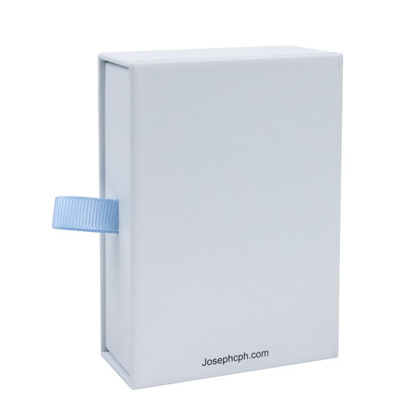 Jedná se o zakázkovou papírovou šperkovnici ve stylu zásuvky s mikrovláknovým pouzdrem. Můžeme ji vyrobit v různých texturách a barvách papíru dle přání zákazníka. Logo může být na šperkovnici nebo pouzdře natištěno / vyraženo / vyraženo.