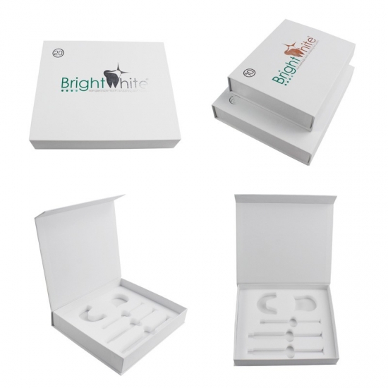 Toto je magnetická krabička ze stříbrné fólie který dělal z uměleckého papíru C2S + 2mm šedé lepenky, vnější a vnitřní strana krabice jsou v bílé barvě, logo na víku je vyraženo stříbrnou fólií a uvnitř EVA lze tvarovat na míru dle vašeho požadavku.