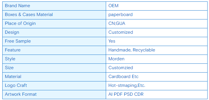 Je to béžová barva krabice s jednou zásuvkou s PE pěnou který dělal z 157g uměleckého papíru C2S + 2mm šedého odolného kartonu ,plný potisku na vnější straně s logem fólie ve zlaté ražbě, velikost PE pěny, která je vyrobena na zakázku podle produktů uvnitř krabice.
