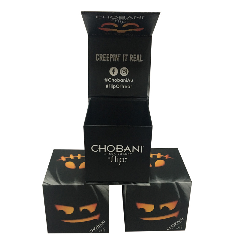 Toto je černá barva pevná skládací krabice který dělal z 157g uměleckého papíru C2S + 1200g šedé lepenky, plnobarevný dýňový potisk na obou stranách krabice.