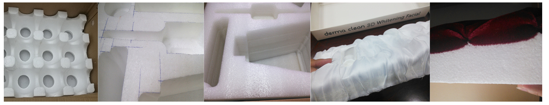 EPS pěna (styropor, polystyrenová pěna) nebo ve verzi s vysokou hustotou, pěnové materiály EPE (PE), obvykle v bílé barvě,
