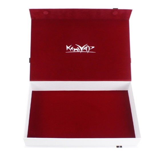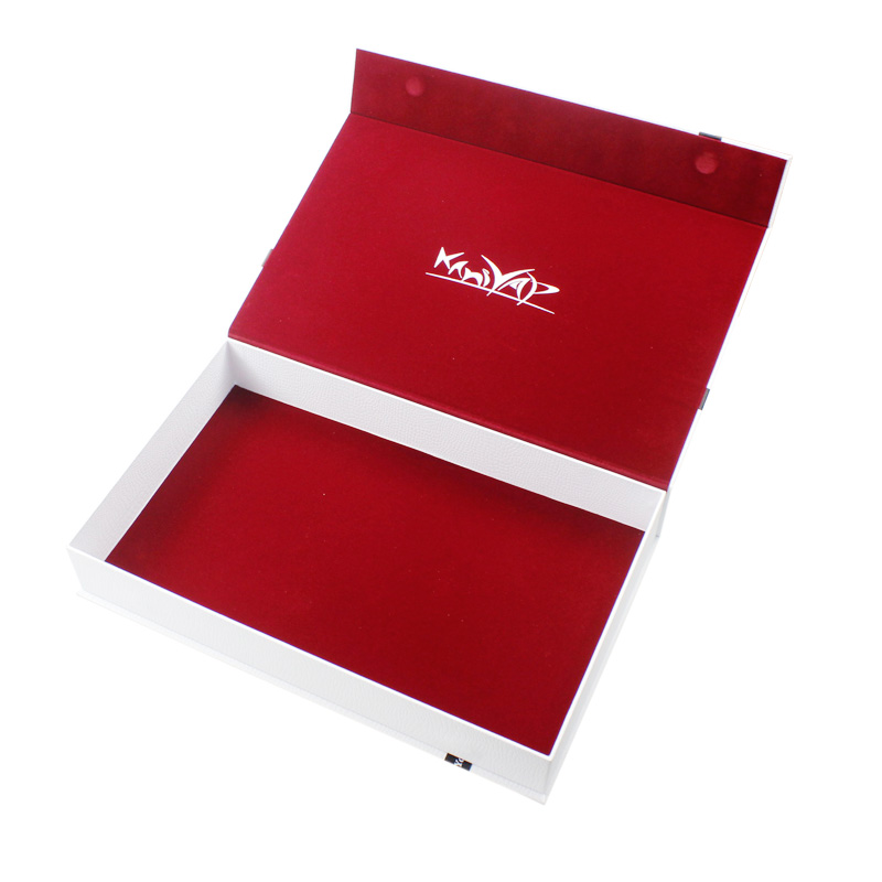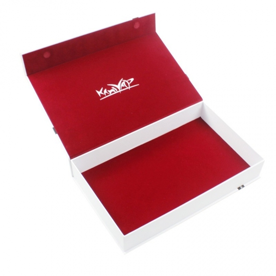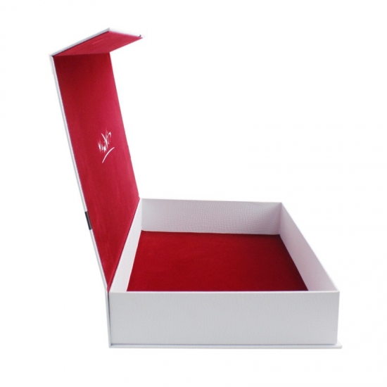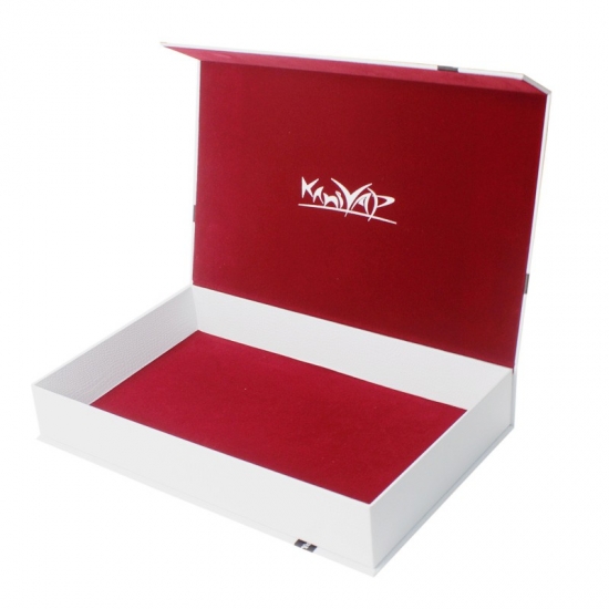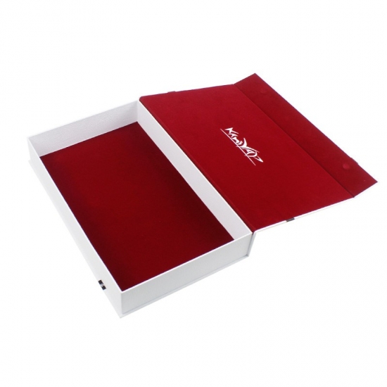 Toto je kniha ve tvaru magnetické dárkové krabičky který dělal z bílého texturovaného speciálního papíru + 1200g šedé lepenky, vnitřní kryt s červenou sametovou látkou, která vylepšuje krabice. Můžeme přizpůsobit velikost dle vašeho požadavku.